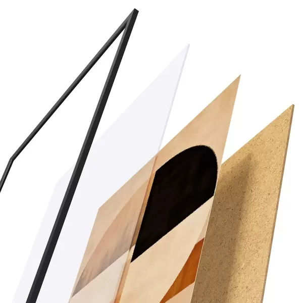 Plakat składa się z ramy, pleksi, wydrukowanego obrazu i podkładu z płyty wiórowej. Plakat można natychmiast zawiesić na ścianie dzięki uchwytom z tyłu.