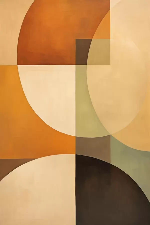 Plakat Duże, przecinające się formy w odcieniach terakoty i oliwki f46533