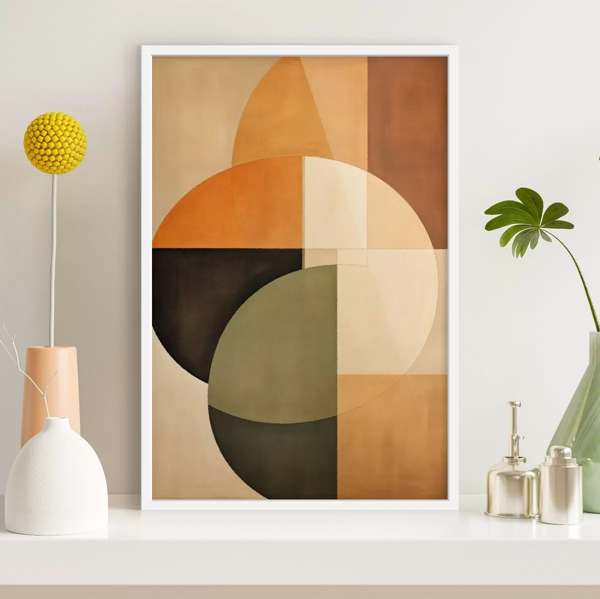 Plakat Przecinające się okręgi w palecie kolorów piaskowo-oliwkowej f46537