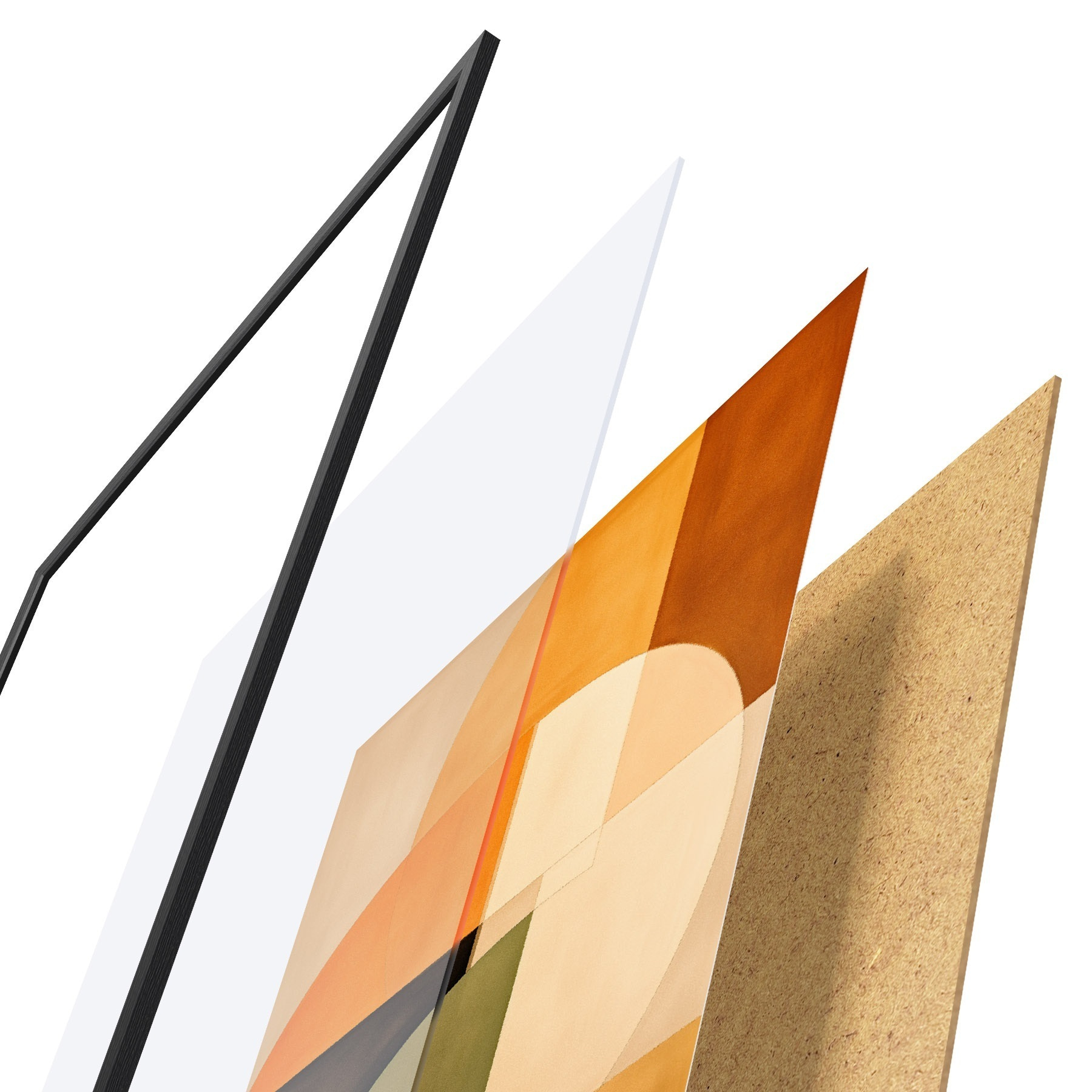 Plakat składa się z ramy, pleksi, wydrukowanego obrazu i podkładu z płyty wiórowej. Plakat można natychmiast zawiesić na ścianie dzięki uchwytom z tyłu.