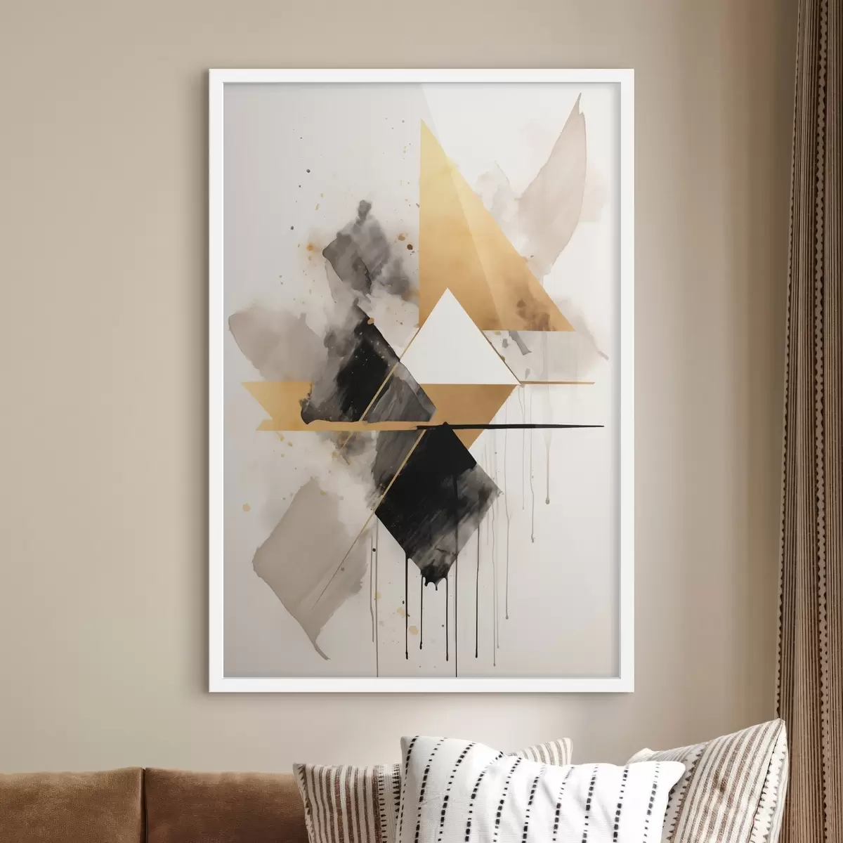 Poster Geometria z trójkątami i czarnym rombem, beżowe pociągnięcia pędzlem Nr f46539