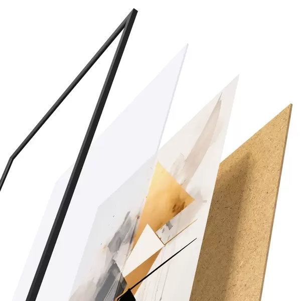 Plakat składa się z ramy, pleksi, wydrukowanego obrazu i podkładu z płyty wiórowej. Plakat można natychmiast zawiesić na ścianie dzięki uchwytom z tyłu.