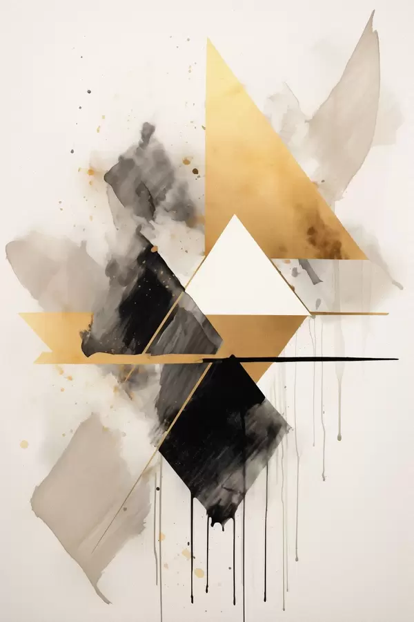 Poster Geometria z trójkątami i czarnym rombem, beżowe pociągnięcia pędzlem Nr f46539