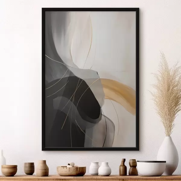 Poster Delikatne krzywizny w kolorze czarnym i beżowym z ciepłym akcentem Nr f46542