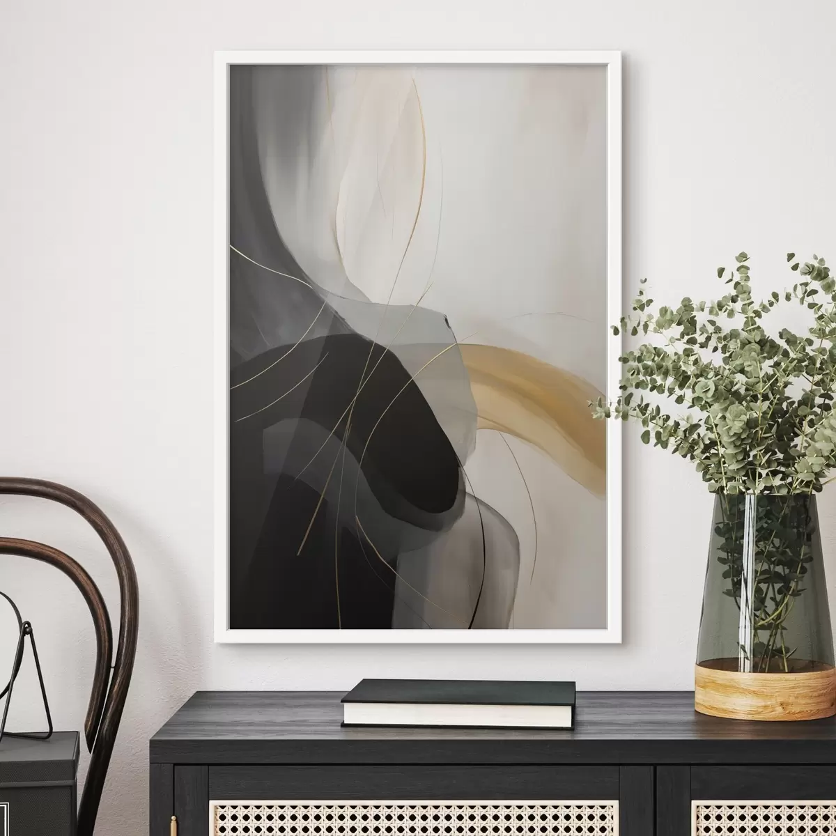 Plakat Delikatne krzywizny w kolorze czarnym i beżowym z ciepłym akcentem f46542