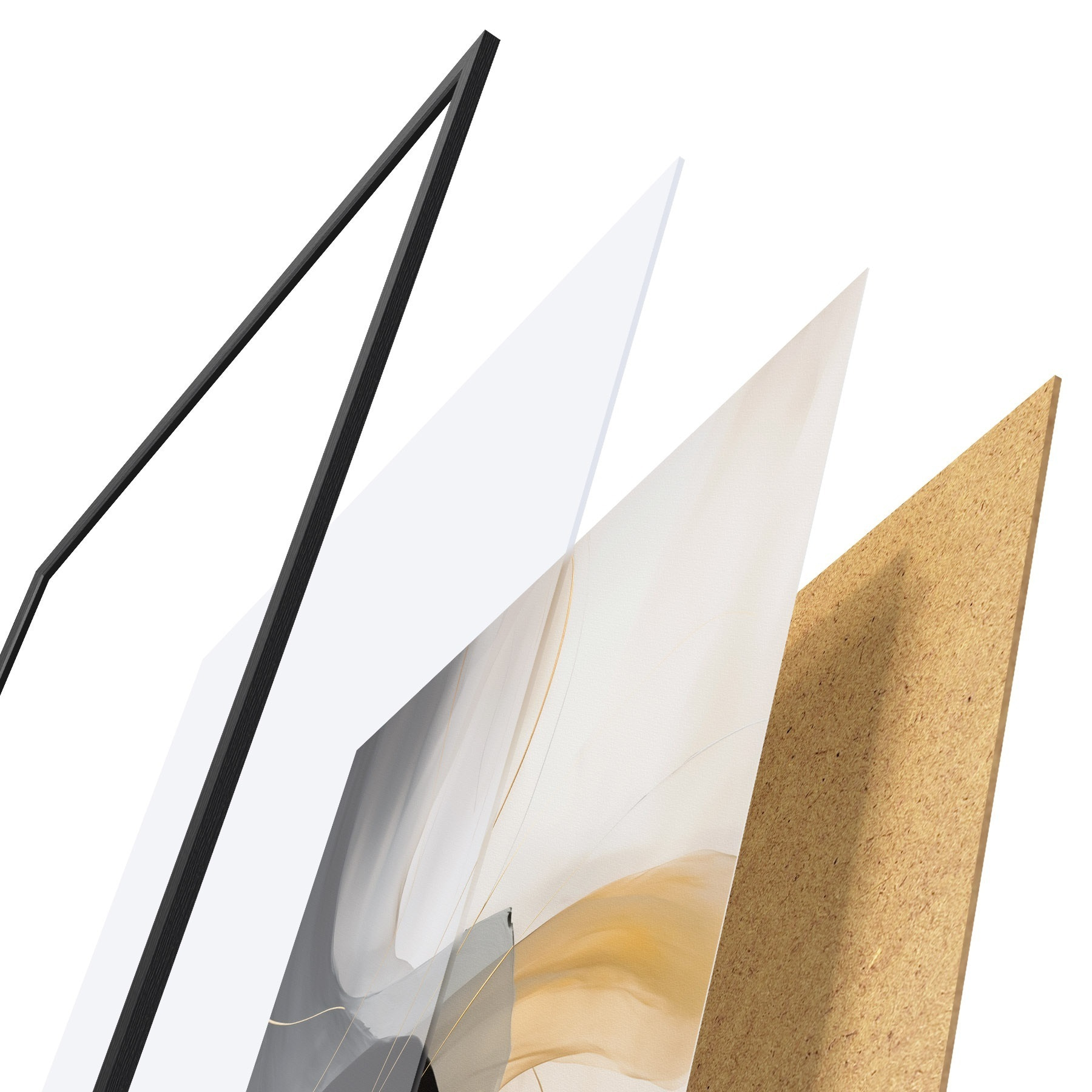 Plakat składa się z ramy, pleksi, wydrukowanego obrazu i podkładu z płyty wiórowej. Plakat można natychmiast zawiesić na ścianie dzięki uchwytom z tyłu.