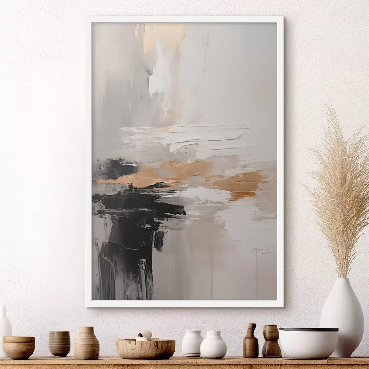 Plakat Pomalowane w odcieniach nude, z kontrastującą czarną i ochrową warstwą f46544