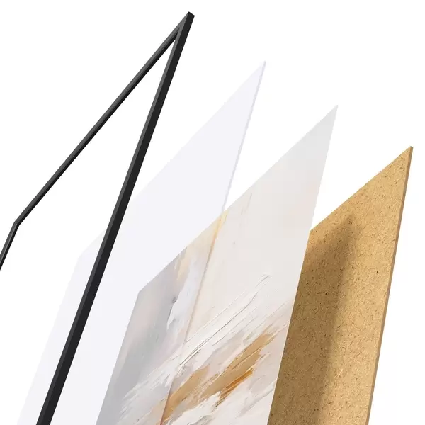Plakat składa się z ramy, pleksi, wydrukowanego obrazu i podkładu z płyty wiórowej. Plakat można natychmiast zawiesić na ścianie dzięki uchwytom z tyłu.