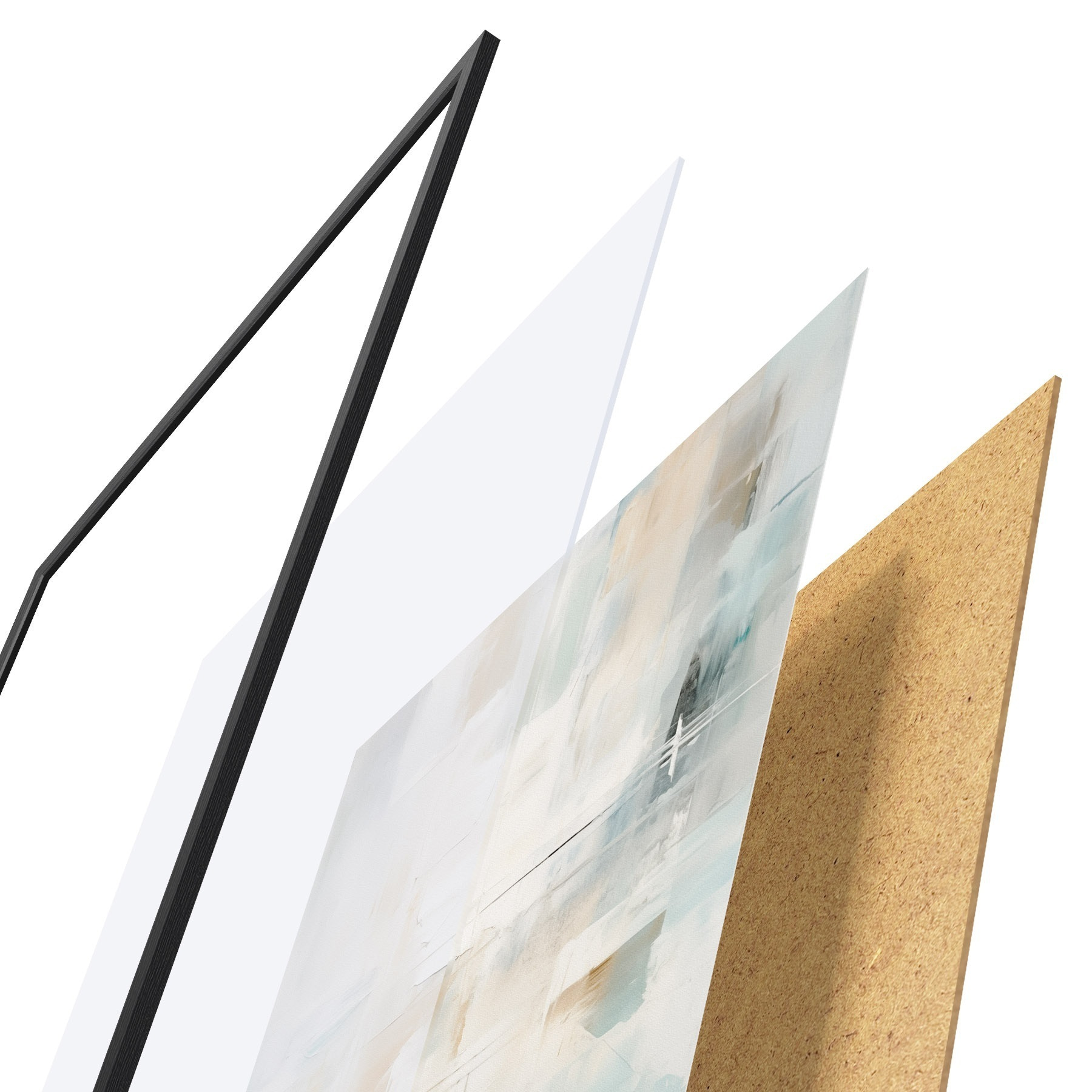 Plakat składa się z ramy, pleksi, wydrukowanego obrazu i podkładu z płyty wiórowej. Plakat można natychmiast zawiesić na ścianie dzięki uchwytom z tyłu.