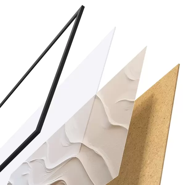 Plakat składa się z ramy, pleksi, wydrukowanego obrazu i podkładu z płyty wiórowej. Plakat można natychmiast zawiesić na ścianie dzięki uchwytom z tyłu.