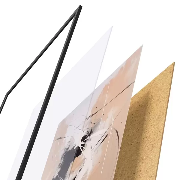 Plakat składa się z ramy, pleksi, wydrukowanego obrazu i podkładu z płyty wiórowej. Plakat można natychmiast zawiesić na ścianie dzięki uchwytom z tyłu.