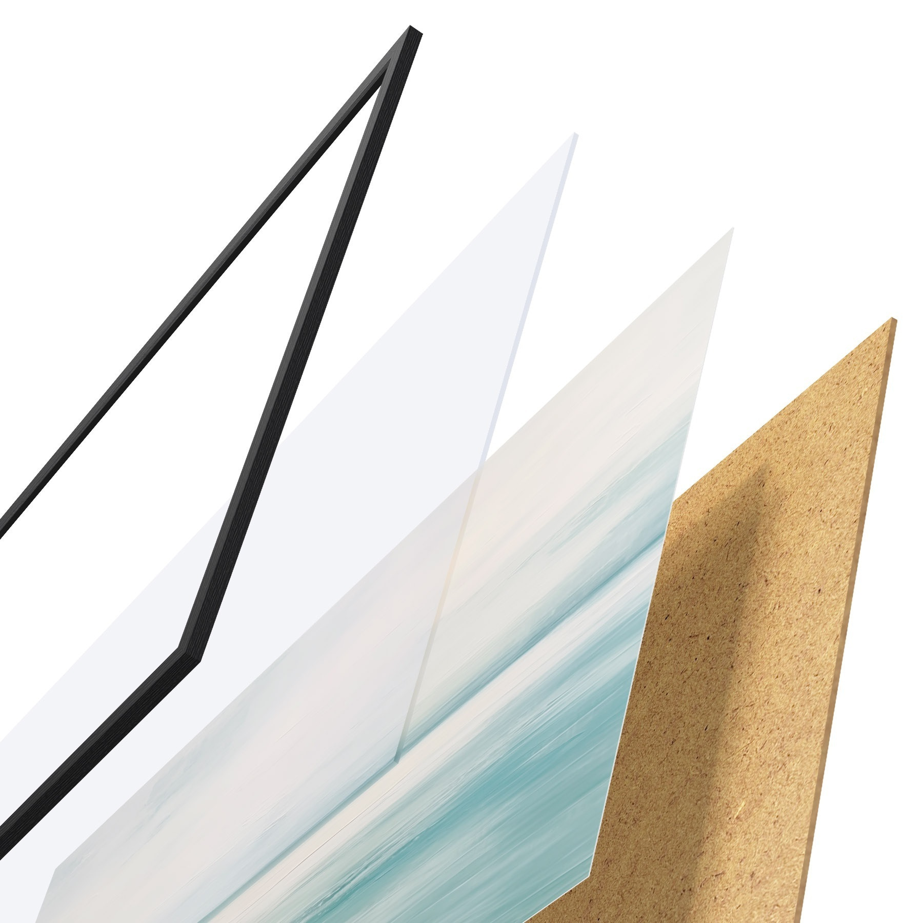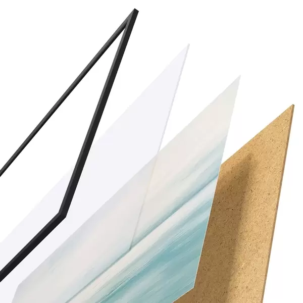 Plakat składa się z ramy, pleksi, wydrukowanego obrazu i podkładu z płyty wiórowej. Plakat można natychmiast zawiesić na ścianie dzięki uchwytom z tyłu.