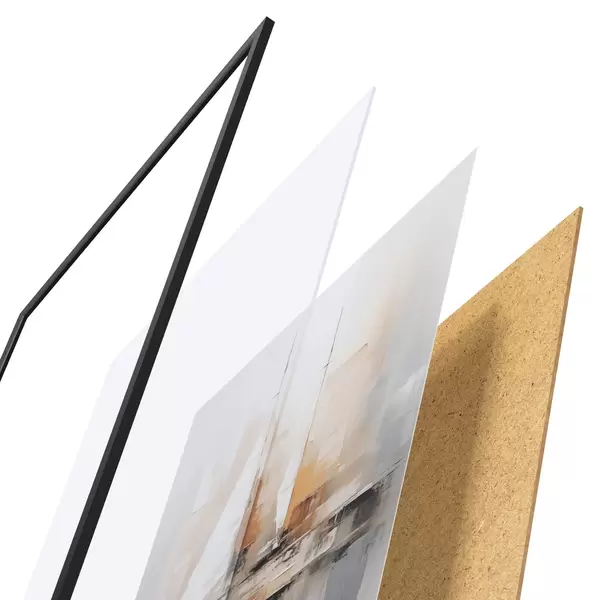 Plakat składa się z ramy, pleksi, wydrukowanego obrazu i podkładu z płyty wiórowej. Plakat można natychmiast zawiesić na ścianie dzięki uchwytom z tyłu.