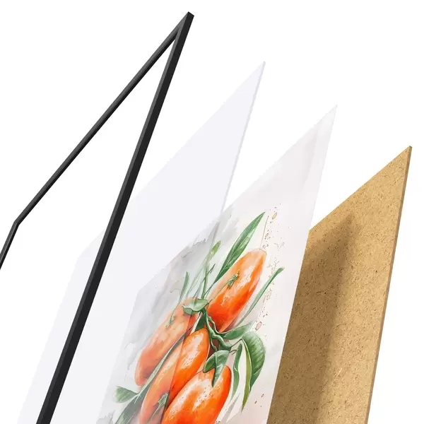 Plakat składa się z ramy, pleksi, wydrukowanego obrazu i podkładu z płyty wiórowej. Plakat można natychmiast zawiesić na ścianie dzięki uchwytom z tyłu.