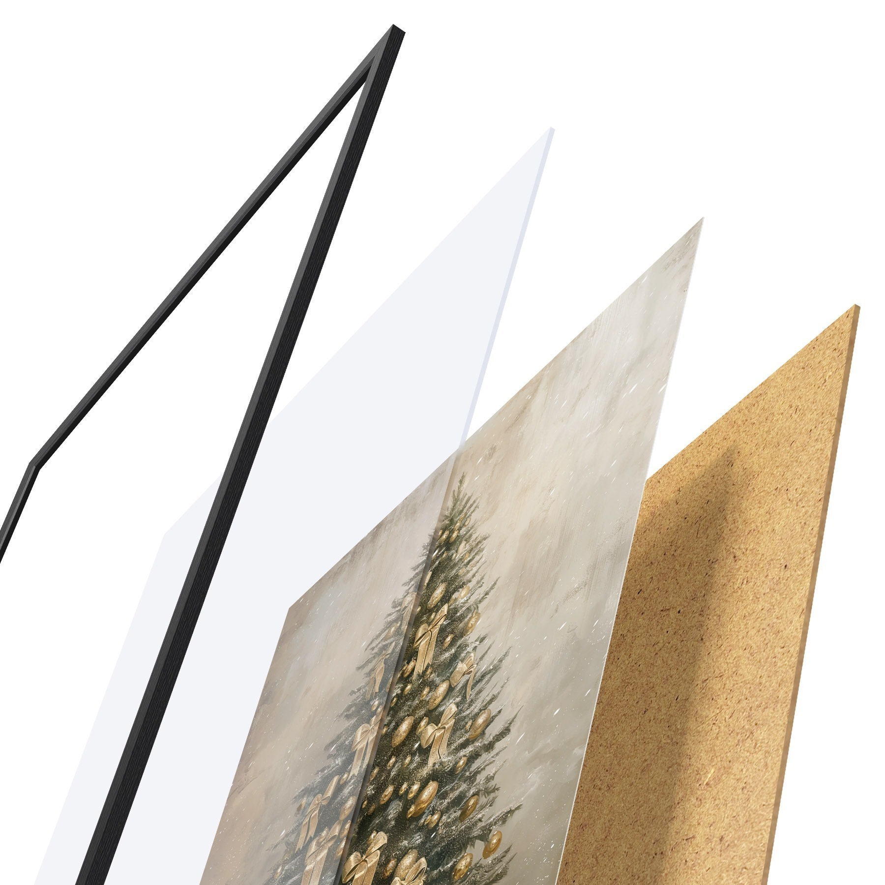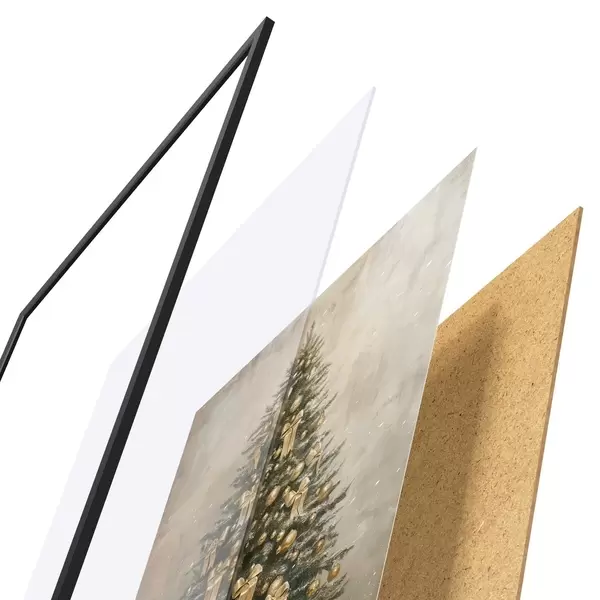 Plakat składa się z ramy, pleksi, wydrukowanego obrazu i podkładu z płyty wiórowej. Plakat można natychmiast zawiesić na ścianie dzięki uchwytom z tyłu.