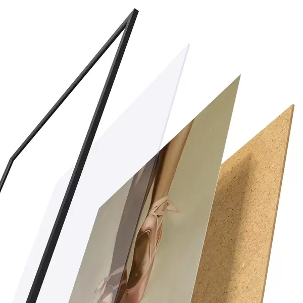 Plakat składa się z ramy, pleksi, wydrukowanego obrazu i podkładu z płyty wiórowej. Plakat można natychmiast zawiesić na ścianie dzięki uchwytom z tyłu.