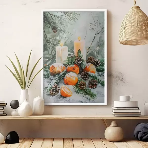 Poster Świece, mandarynki i szyszki sosnowe Nr f46614
