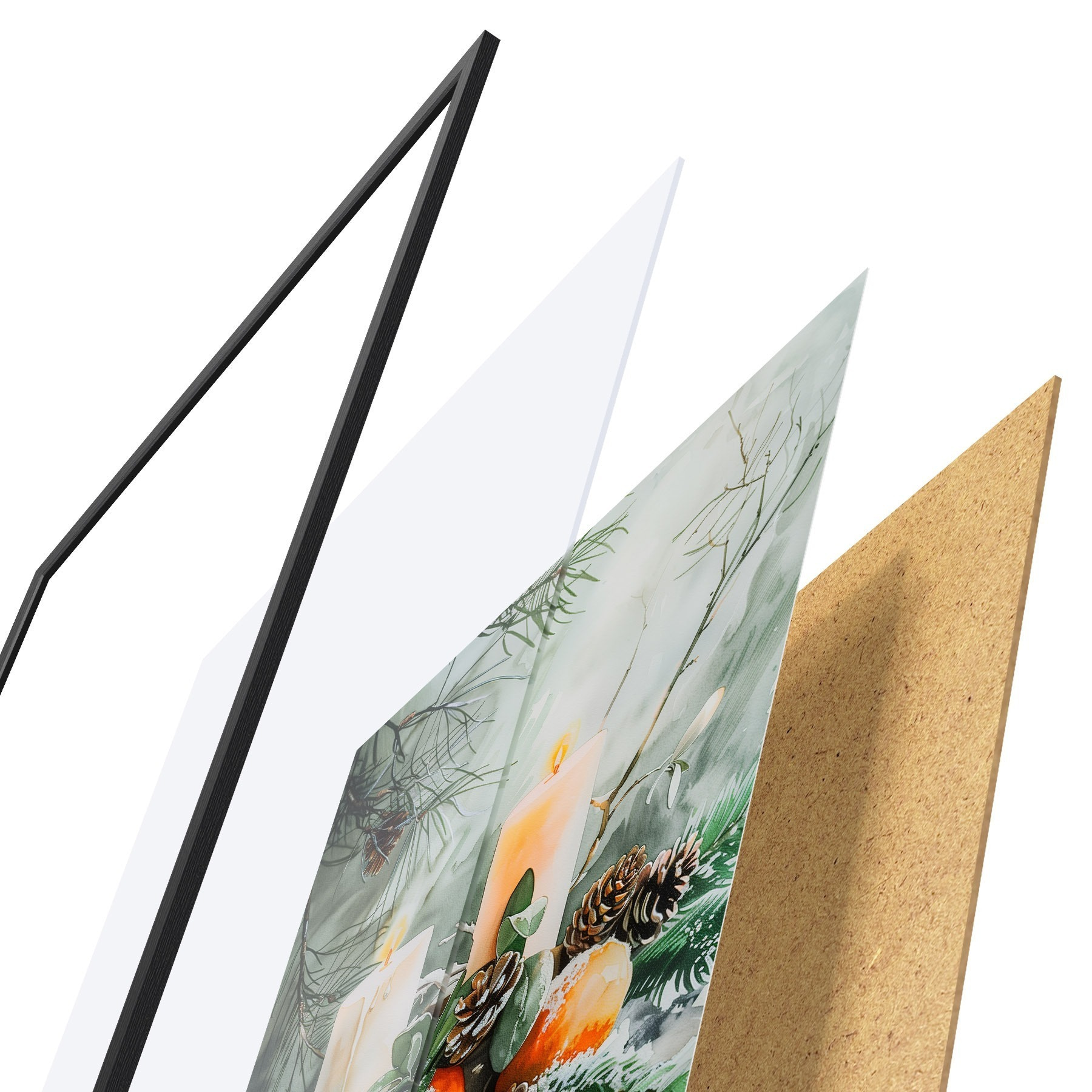 Plakat składa się z ramy, pleksi, wydrukowanego obrazu i podkładu z płyty wiórowej. Plakat można natychmiast zawiesić na ścianie dzięki uchwytom z tyłu.