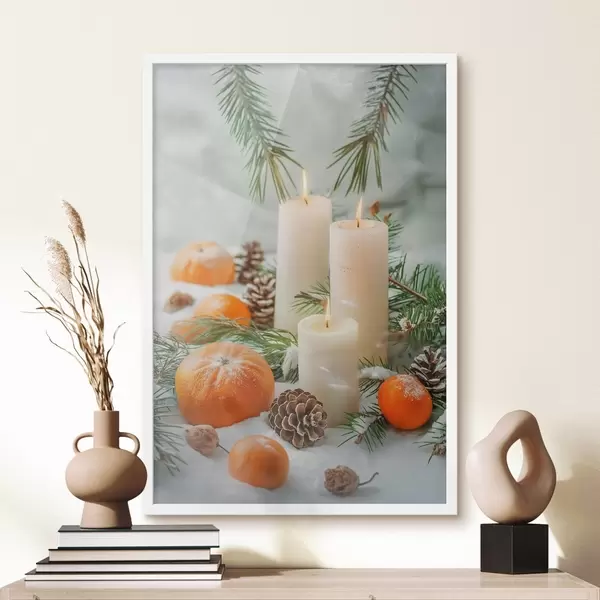 Plakat Świece, mandarynki i szyszki sosnowe f46615