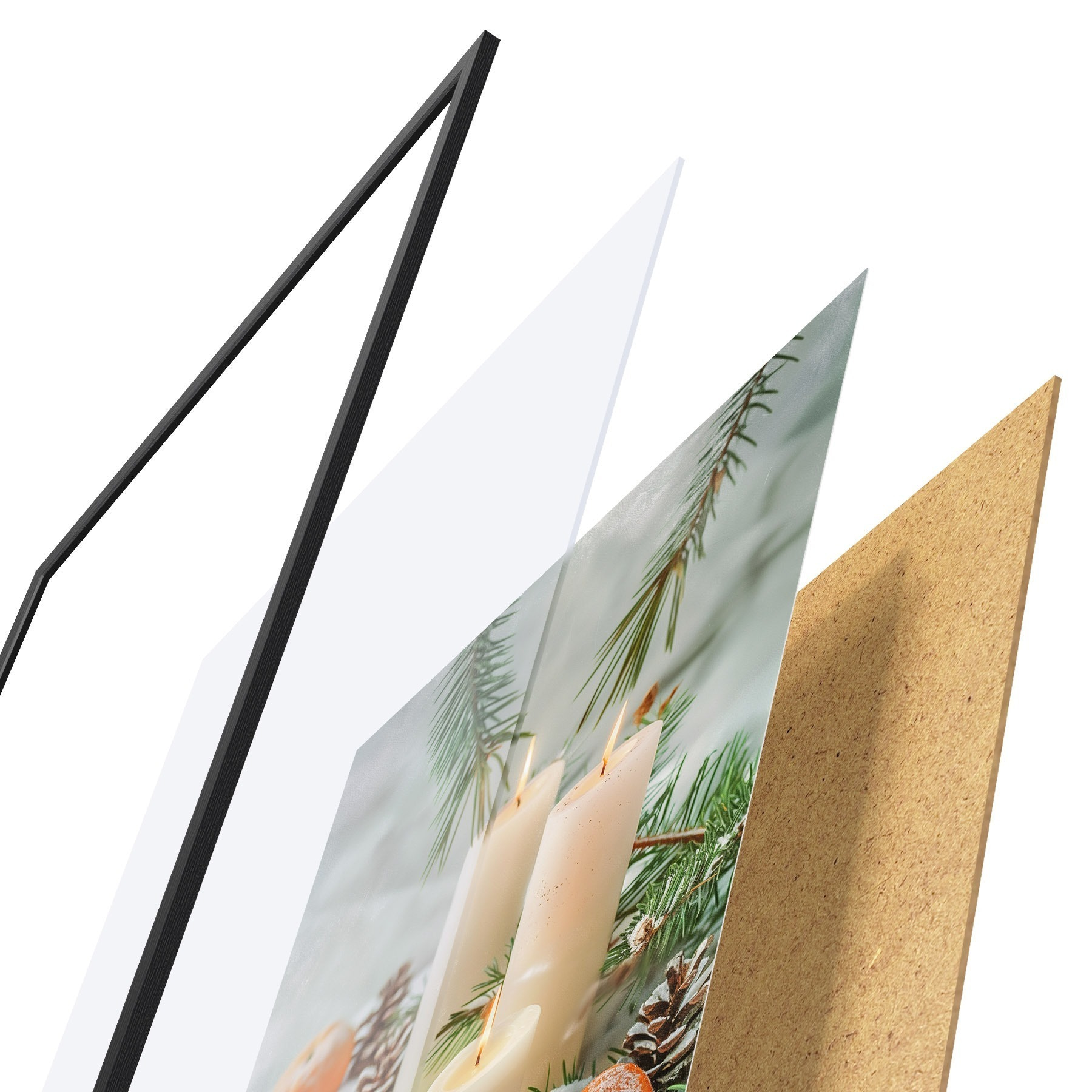 Plakat składa się z ramy, pleksi, wydrukowanego obrazu i podkładu z płyty wiórowej. Plakat można natychmiast zawiesić na ścianie dzięki uchwytom z tyłu.