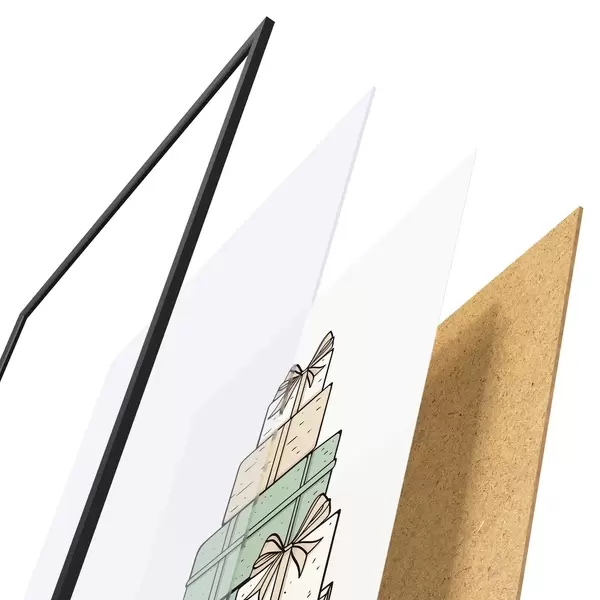Plakat składa się z ramy, pleksi, wydrukowanego obrazu i podkładu z płyty wiórowej. Plakat można natychmiast zawiesić na ścianie dzięki uchwytom z tyłu.