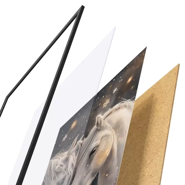 Plakat składa się z ramy, pleksi, wydrukowanego obrazu i podkładu z płyty wiórowej. Plakat można natychmiast zawiesić na ścianie dzięki uchwytom z tyłu.