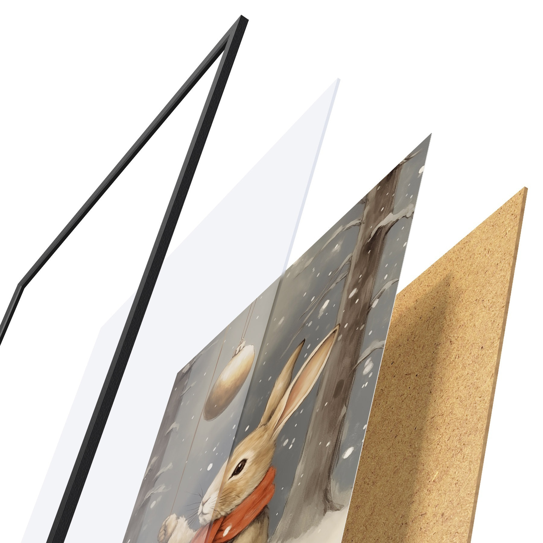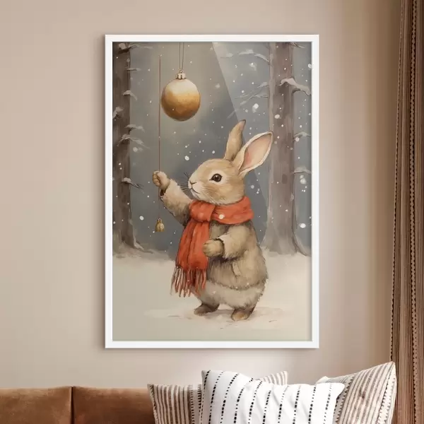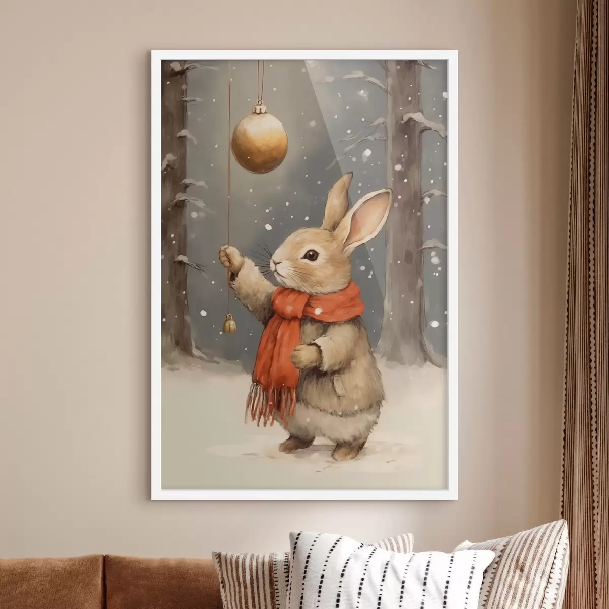 Poster Zimowy zając z szalikiem i bombką choinkową Nr f46619