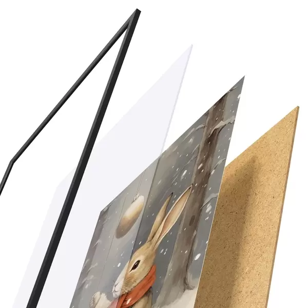 Plakat składa się z ramy, pleksi, wydrukowanego obrazu i podkładu z płyty wiórowej. Plakat można natychmiast zawiesić na ścianie dzięki uchwytom z tyłu.