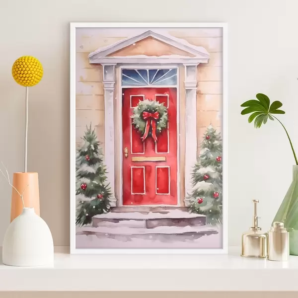 Poster Świąteczne drzwi z wieńcem Nr f46622