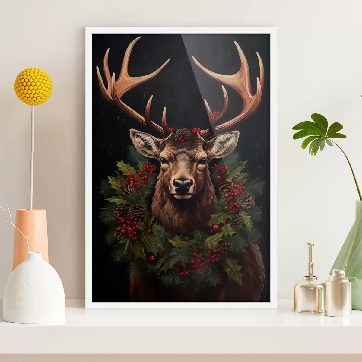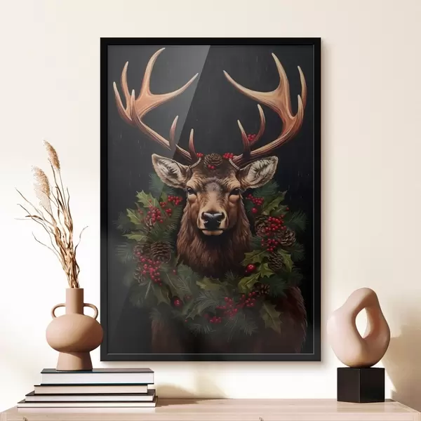 Poster Portret jelenia z wieńcem bożonarodzeniowym Nr f46628