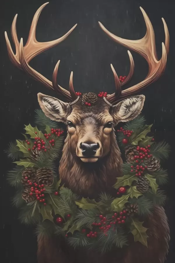 Poster Portret jelenia z wieńcem bożonarodzeniowym Nr f46628