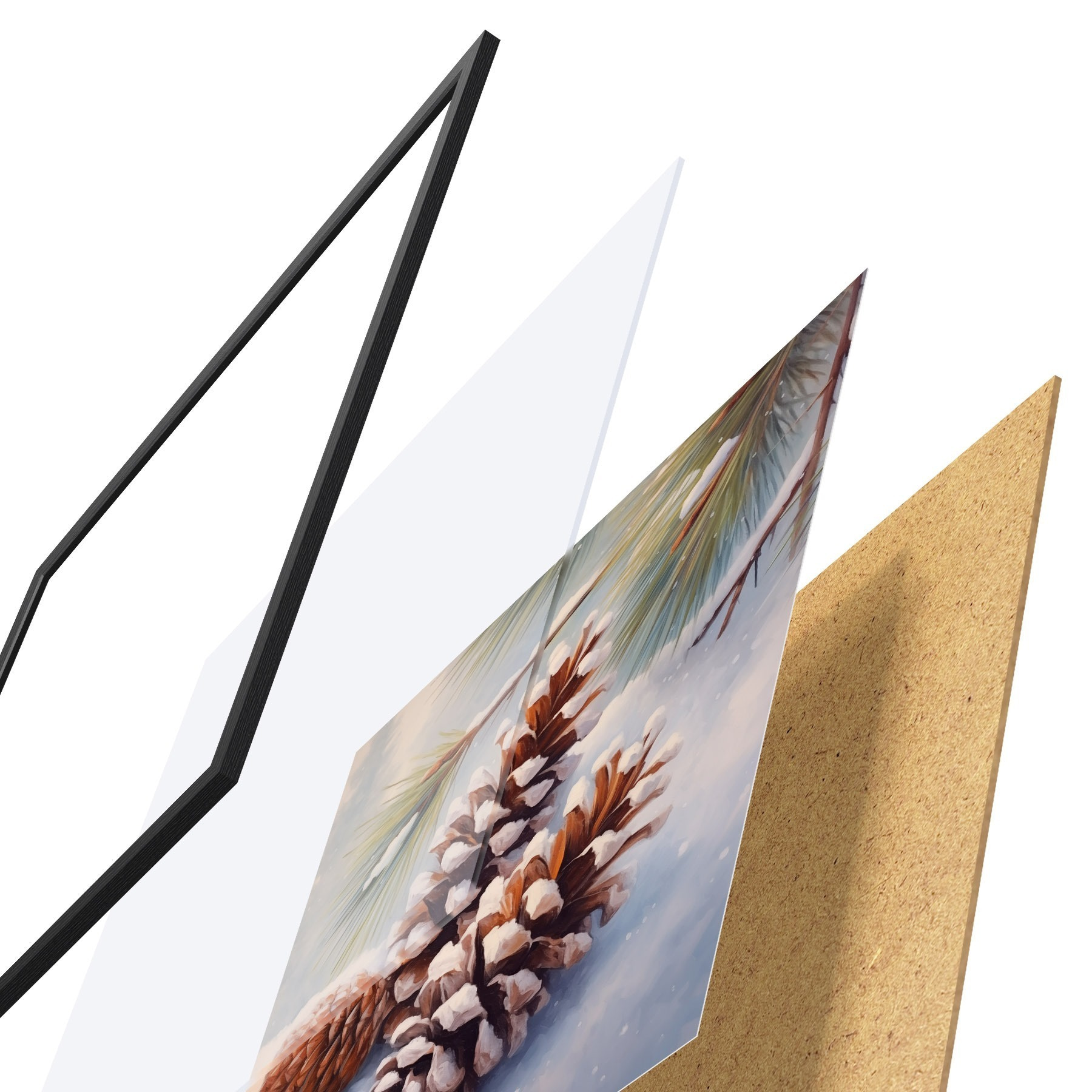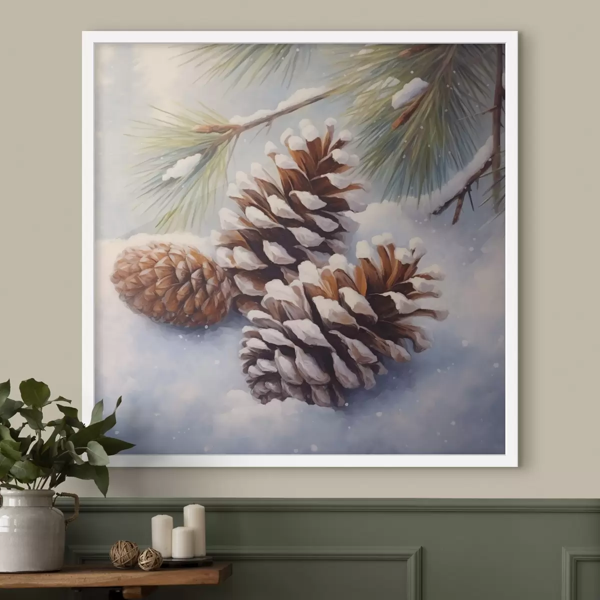 Plakat Pokryte śniegiem szyszki i gałęzie sosny f46631