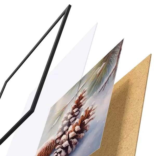 Plakat składa się z ramy, pleksi, wydrukowanego obrazu i podkładu z płyty wiórowej. Plakat można natychmiast zawiesić na ścianie dzięki uchwytom z tyłu.