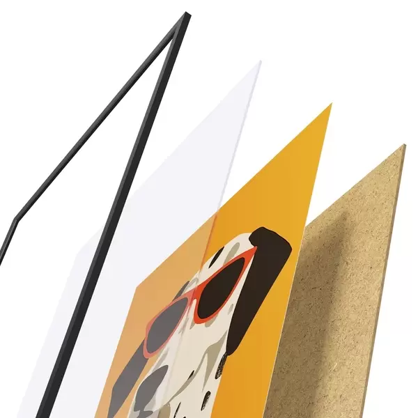 Plakat składa się z ramy, pleksi, wydrukowanego obrazu i podkładu z płyty wiórowej. Plakat można natychmiast zawiesić na ścianie dzięki uchwytom z tyłu.