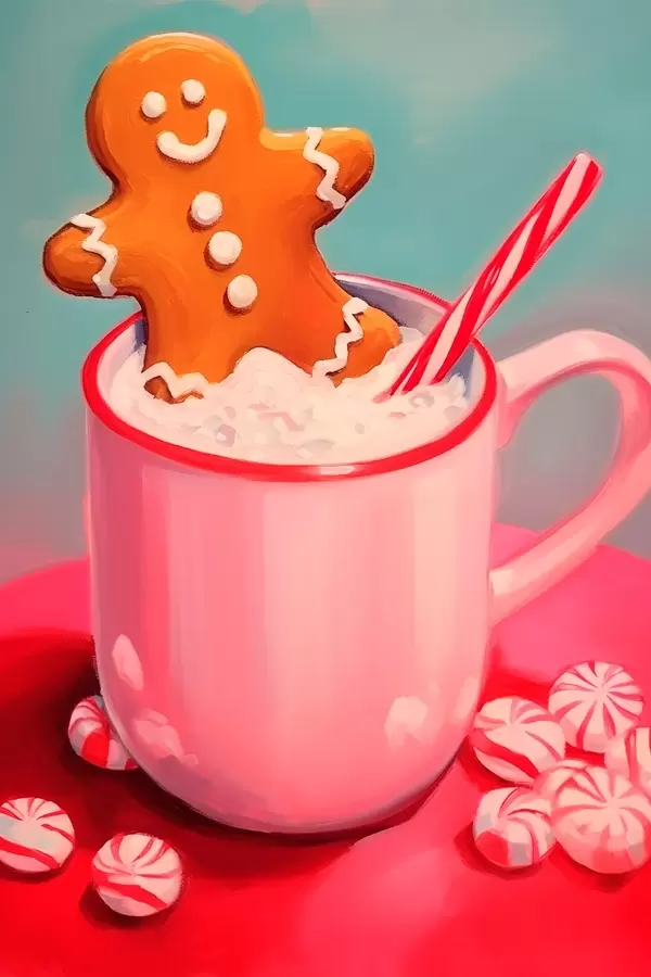Plakat Piernikowy ludzik w filiżance gorącej czekolady f46635
