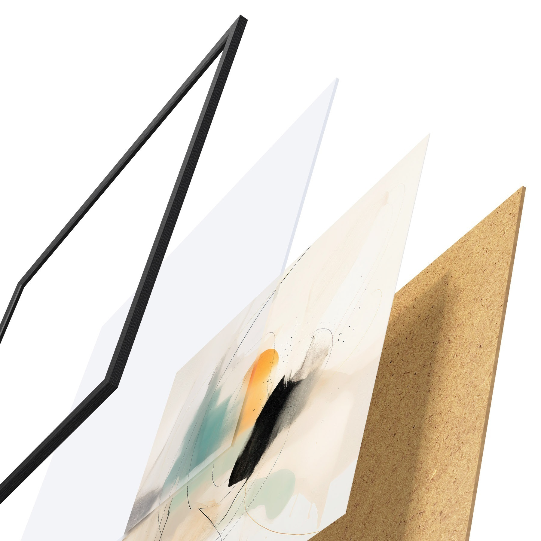 Plakat składa się z ramy, pleksi, wydrukowanego obrazu i podkładu z płyty wiórowej. Plakat można natychmiast zawiesić na ścianie dzięki uchwytom z tyłu.