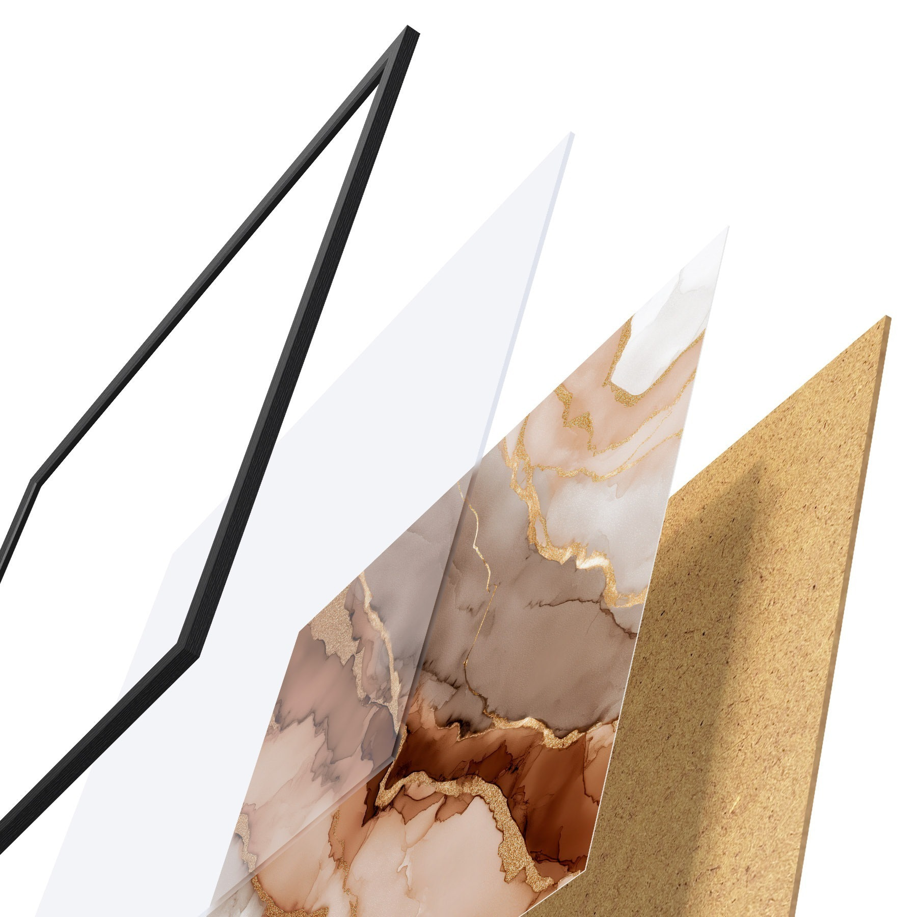 Plakat składa się z ramy, pleksi, wydrukowanego obrazu i podkładu z płyty wiórowej. Plakat można natychmiast zawiesić na ścianie dzięki uchwytom z tyłu.