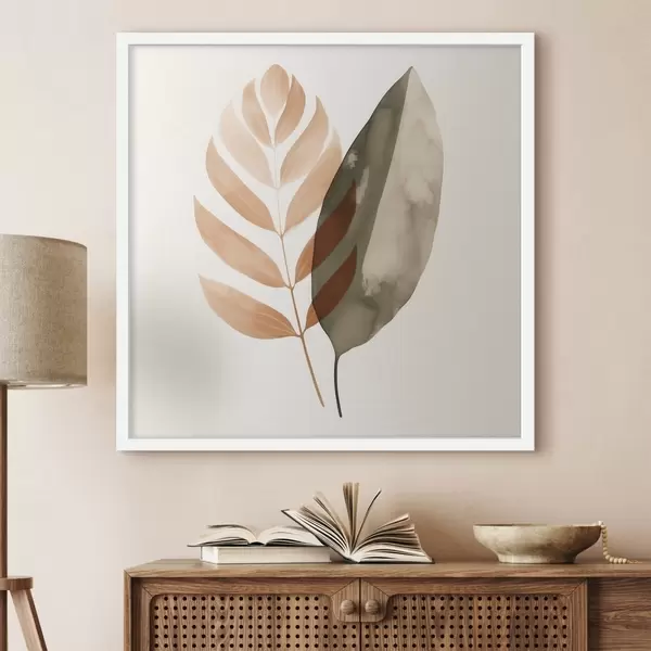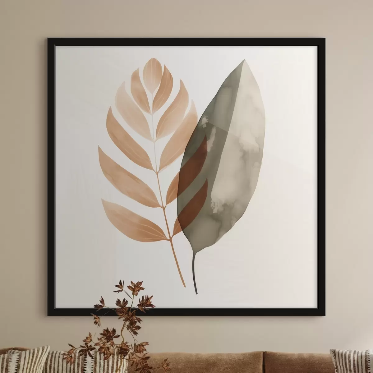Plakat Duet sylwetek liści w abstrakcyjnym stylu akwarelowym f46645