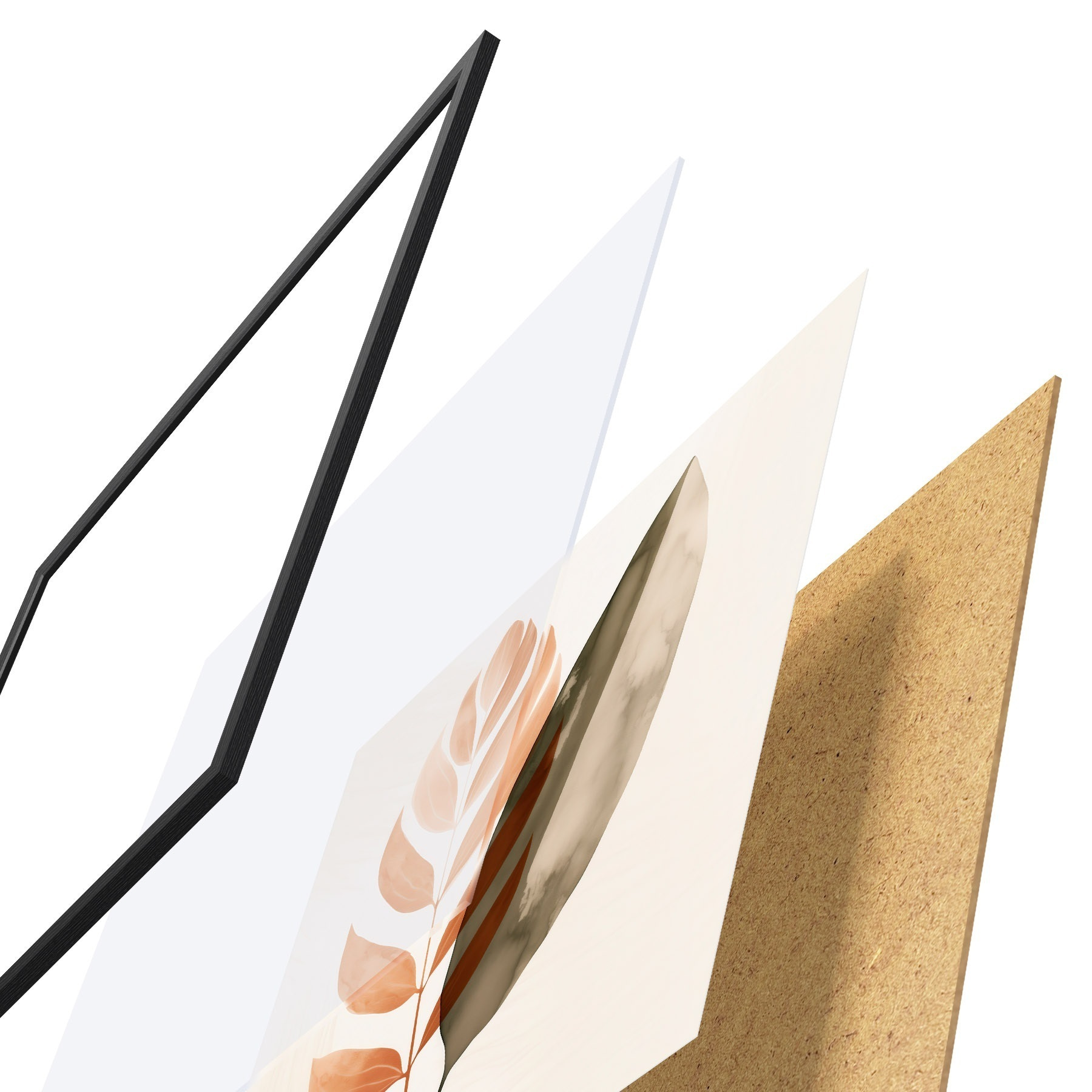 Plakat składa się z ramy, pleksi, wydrukowanego obrazu i podkładu z płyty wiórowej. Plakat można natychmiast zawiesić na ścianie dzięki uchwytom z tyłu.