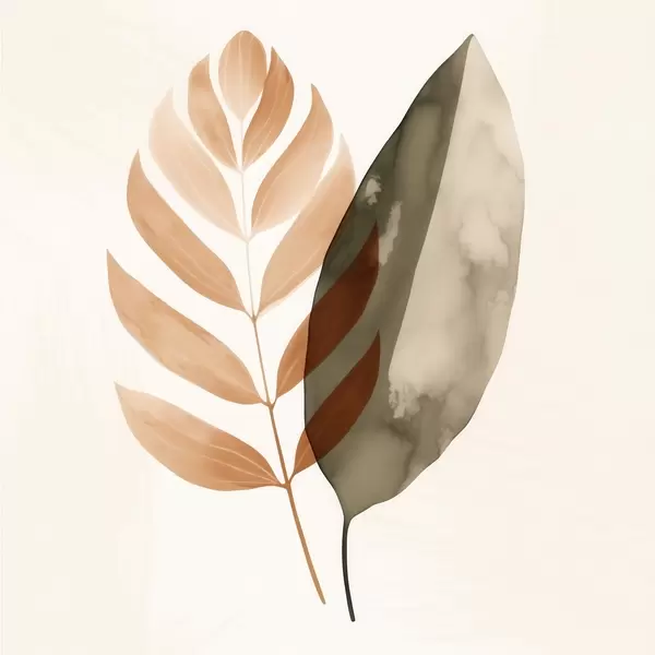 Poster Duet sylwetek liści w abstrakcyjnym stylu akwarelowym Nr f46645