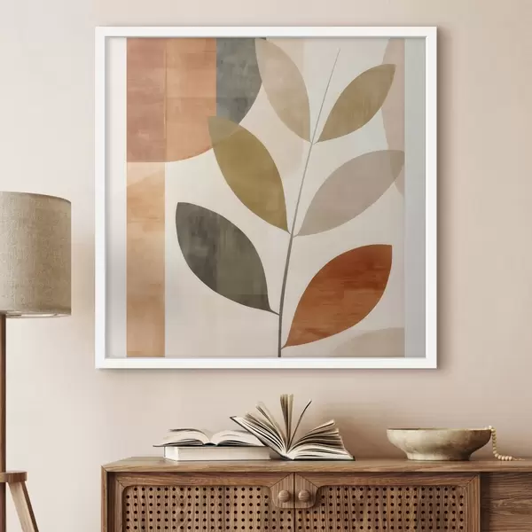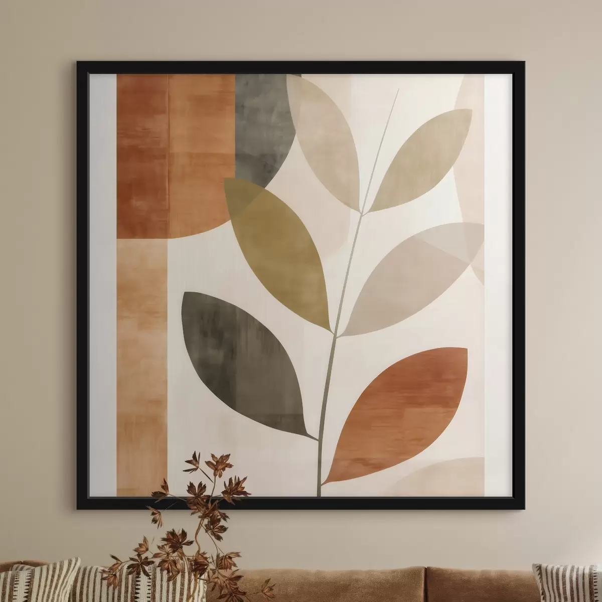 Poster Ciepła kompozycja liści w lirycznym, minimalistycznym stylu Nr f46646