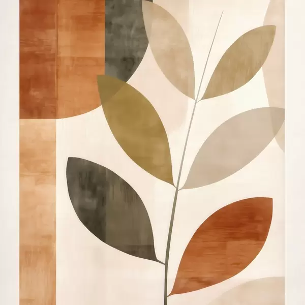 Poster Ciepła kompozycja liści w lirycznym, minimalistycznym stylu Nr f46646