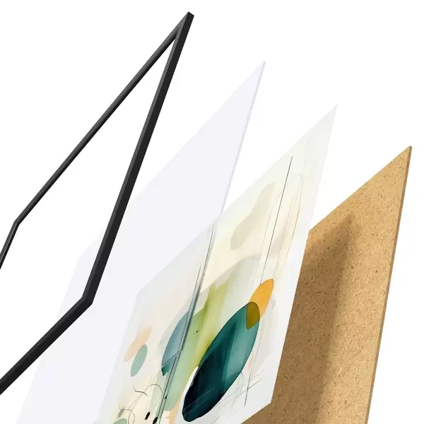 Plakat składa się z ramy, pleksi, wydrukowanego obrazu i podkładu z płyty wiórowej. Plakat można natychmiast zawiesić na ścianie dzięki uchwytom z tyłu.