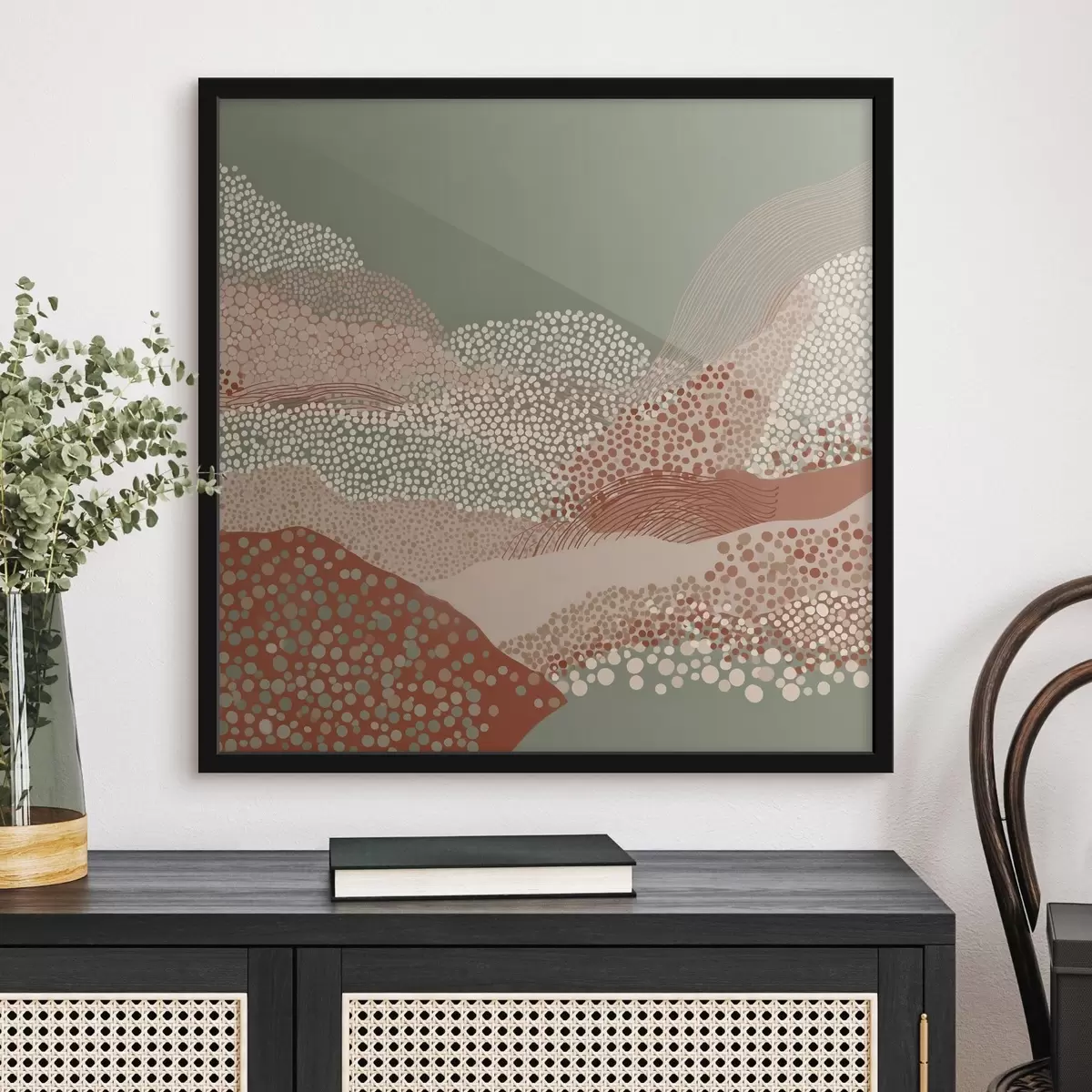 Plakat składa się z ramy, pleksi, wydrukowanego obrazu i podkładu z płyty wiórowej. Plakat można natychmiast zawiesić na ścianie dzięki uchwytom z tyłu.