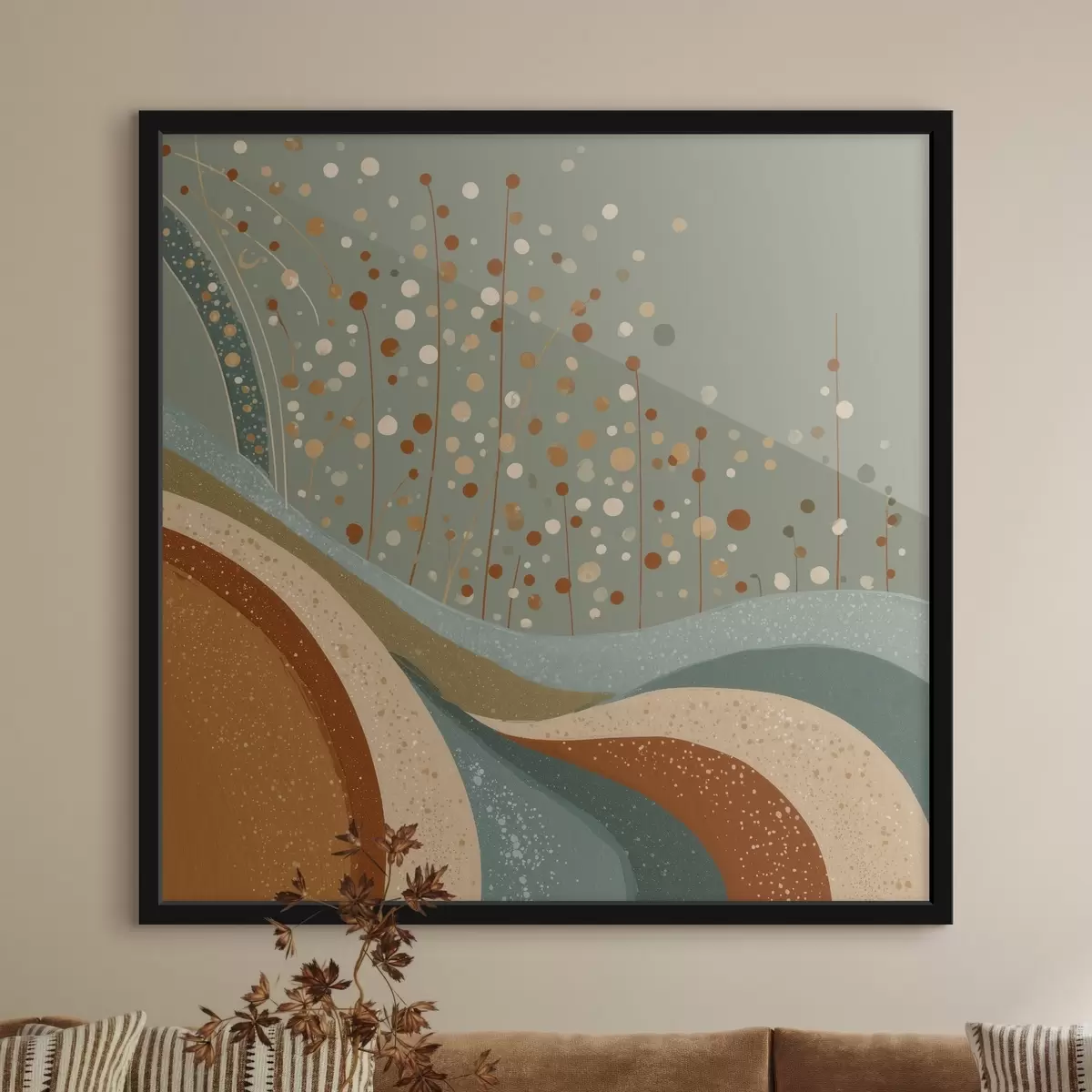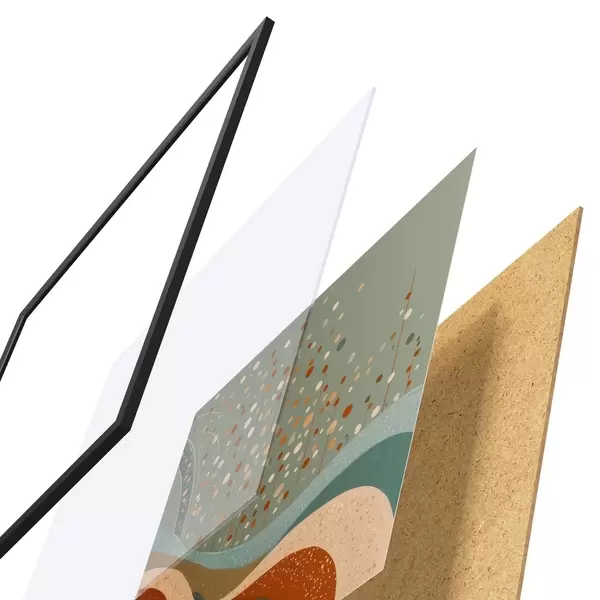 Plakat składa się z ramy, pleksi, wydrukowanego obrazu i podkładu z płyty wiórowej. Plakat można natychmiast zawiesić na ścianie dzięki uchwytom z tyłu.