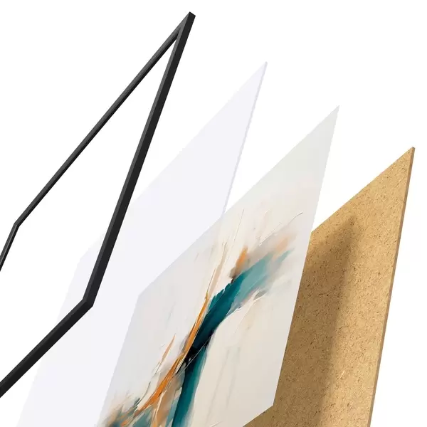 Plakat składa się z ramy, pleksi, wydrukowanego obrazu i podkładu z płyty wiórowej. Plakat można natychmiast zawiesić na ścianie dzięki uchwytom z tyłu.