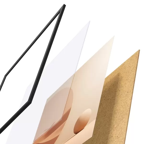 Plakat składa się z ramy, pleksi, wydrukowanego obrazu i podkładu z płyty wiórowej. Plakat można natychmiast zawiesić na ścianie dzięki uchwytom z tyłu.
