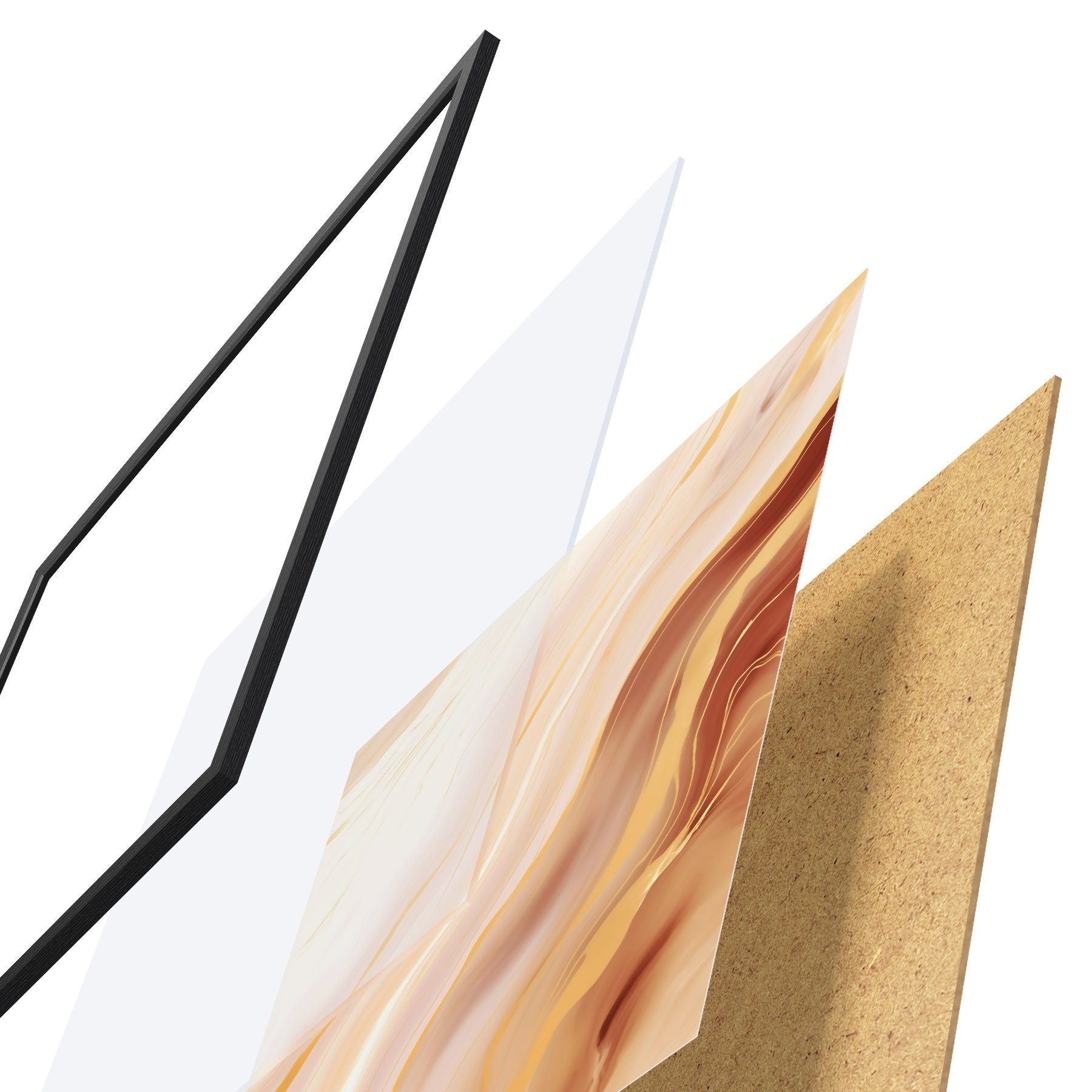Plakat składa się z ramy, pleksi, wydrukowanego obrazu i podkładu z płyty wiórowej. Plakat można natychmiast zawiesić na ścianie dzięki uchwytom z tyłu.