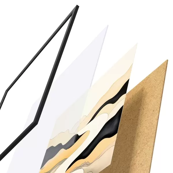 Plakat składa się z ramy, pleksi, wydrukowanego obrazu i podkładu z płyty wiórowej. Plakat można natychmiast zawiesić na ścianie dzięki uchwytom z tyłu.
