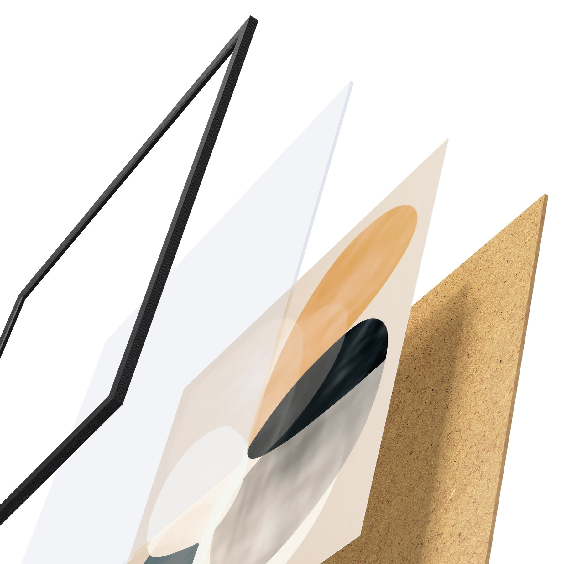 Plakat składa się z ramy, pleksi, wydrukowanego obrazu i podkładu z płyty wiórowej. Plakat można natychmiast zawiesić na ścianie dzięki uchwytom z tyłu.